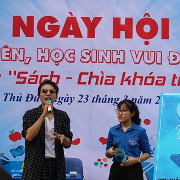 Do sáng phải đi quay nên Phong chưa đến kịp phần mở đầu để xem các tiết mục văn nghệ của các trường. Tuy nhiên vẫn kịp có mặt để giao lưu với các bạn ở phần 2 của chương trình với chủ đề "Sách- chìa khóa tri thức"